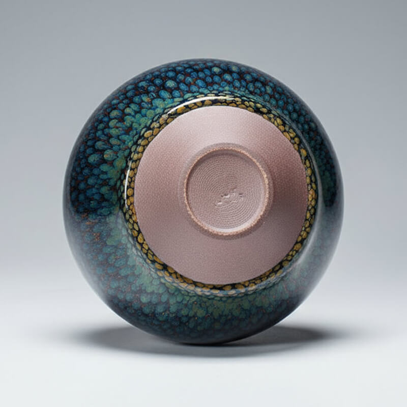 Tenmoku teaware stands out for its distinctive shape and specialized glaze. The jian zhan tenmoku tea cups feature a wide-brimmed bowl design that allows tea to steep and cool naturally. Fired at extremely high temperatures, the glaze—rich in iron—creates a deep black finish with unique, mesmerizing patterns that are exclusive to jian zhan tenmoku pottery. It is an ideal choice for your home decoration art.