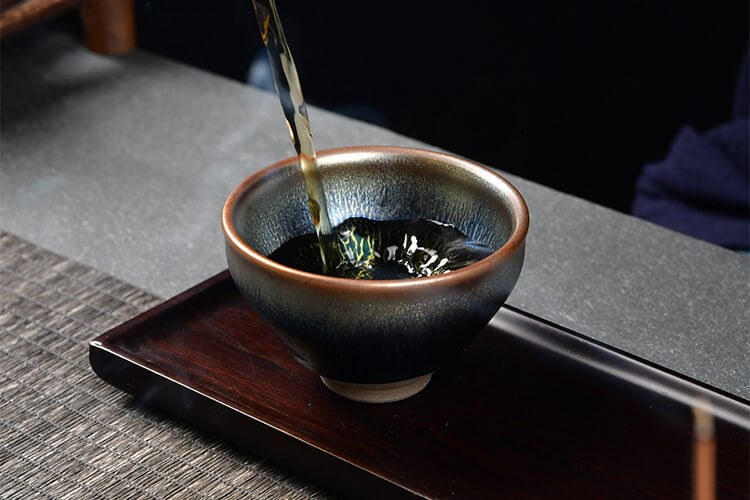 Tenmoku teaware stands out for its distinctive shape and specialized glaze. The jian zhan tenmoku tea cups feature a wide-brimmed bowl design that allows tea to steep and cool naturally. Fired at extremely high temperatures, the glaze—rich in iron—creates a deep black finish with unique, mesmerizing patterns that are exclusive to jian zhan tenmoku pottery. It is an ideal choice for your home decoration art.